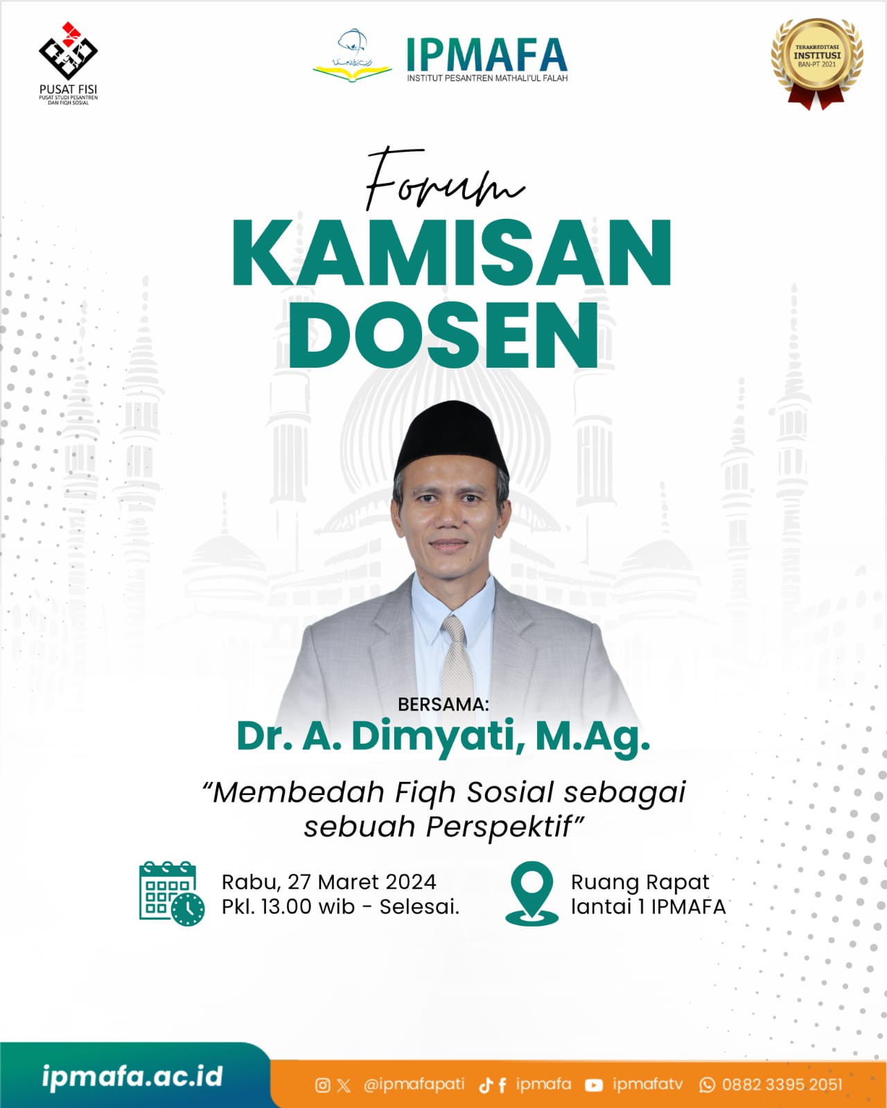 Forum Kamisan Dosen merupakan acara diskusi rutin yang diadakan setiap hari Kamis yang diselenggarakan oleh Pusat FISI di Institut Pesantren Mathali’ul Falah (IPMAFA).